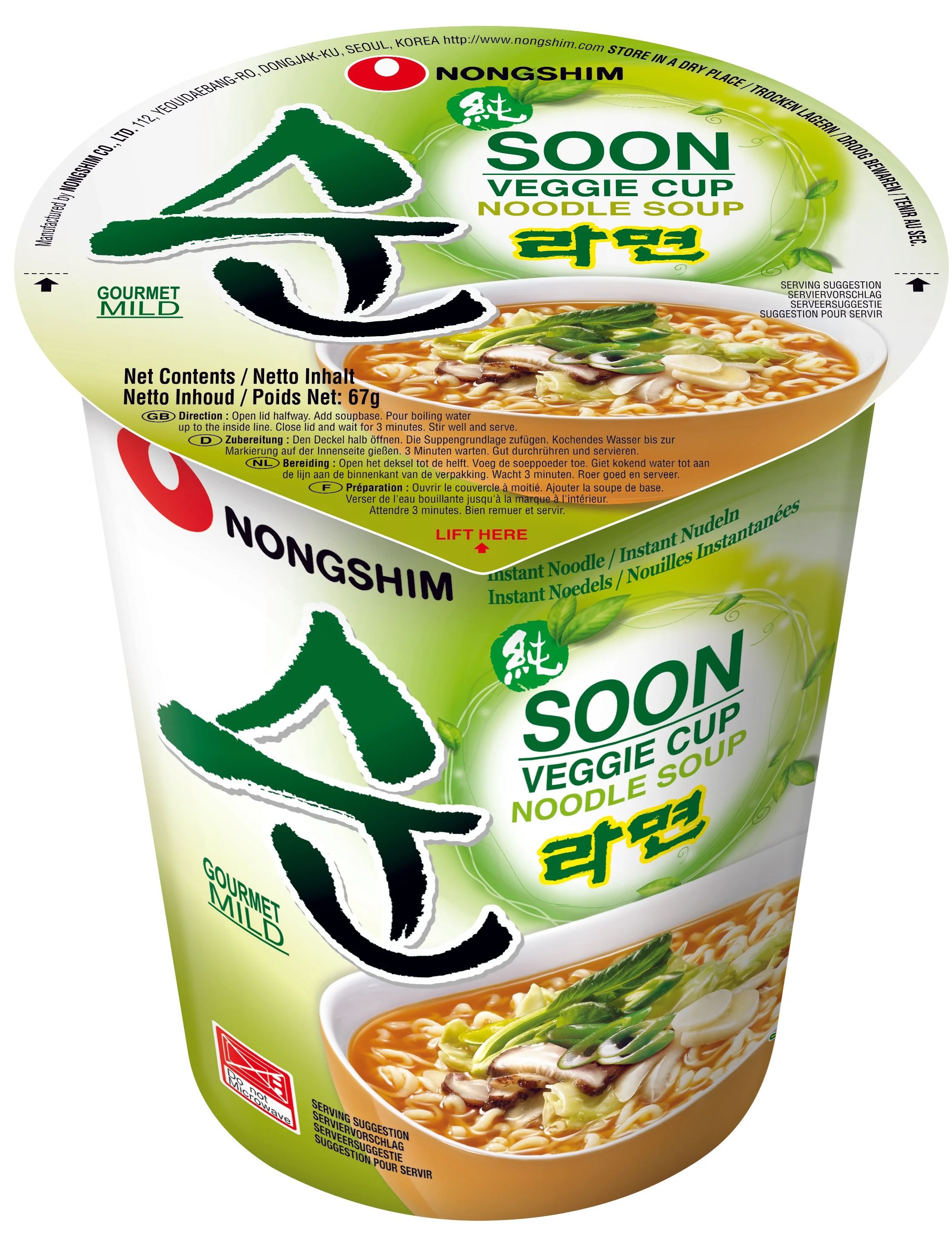 Іноді начинка в супах швидкого приготування є запізнілою думкою чи гарніром, у чашці з овочевою локшиною Nongshim Soon вони є визначними інгредієнтами. Гриби, морква, кукурудза та зелена цибуля утворюють чудову суміш і додають страві свіжості та текстури. Бульйон легкий з легким присмаком спецій і не жертвує смаком, але овочі є справжньою зіркою страви. Ви будете продовжувати повертатися до пікантного бульйону ще довго після того, як локшина закінчиться, щоб опустити все до останнього на дно миски.