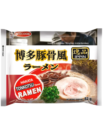 Відчуйте насичені автентичні смаки Hakata з Tonkotsu Ramen від Acecook. Ця упакована насолода принесе суть знаменитого супу з локшиною зі свинячого бульйону Фукуока прямо на вашу кухню. Простий у приготуванні, але дуже ситний, у кожній чаші представлена шовковиста локшина, вершковий, насичений пікантний бульйон і гармонійне поєднання традиційних спецій, які перенесуть вас прямо на вулиці Хакати. Ідеально підходить для швидкої їжі або нічних перекусів, насолоджуйтеся справжнім смаком Японії без проблем.