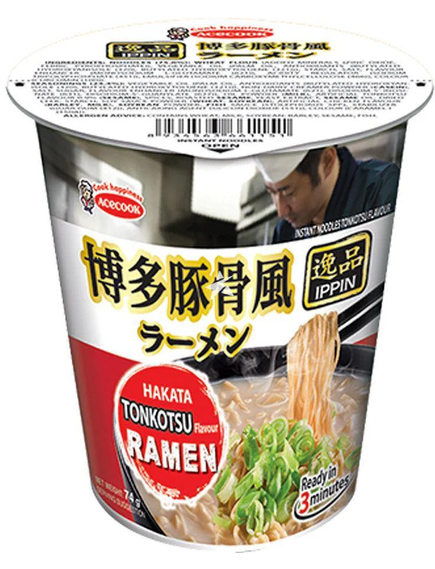 Відчуйте насичені автентичні смаки Hakata з Tonkotsu Ramen від Acecook. Ця упакована насолода принесе суть знаменитого супу з локшиною зі свинячого бульйону Фукуока прямо на вашу кухню. Простий у приготуванні, але дуже ситний, у кожній чаші представлена шовковиста локшина, вершковий, насичений пікантний бульйон і гармонійне поєднання традиційних спецій, які перенесуть вас прямо на вулиці Хакати. Ідеально підходить для швидкої їжі або нічних перекусів, насолоджуйтеся справжнім смаком Японії без проблем.
