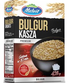 Склад: органічний булгур. Булгур — мелена тверда пшениця, яка походить із Туреччини та Близького Сходу. Він швидко готується і смакує як теплим, так і холодним. Заготівля на 2 особи Додайте 100 г булгуру в 200 мл підсоленої води або овочевого бульйону і доведіть до кипіння....
