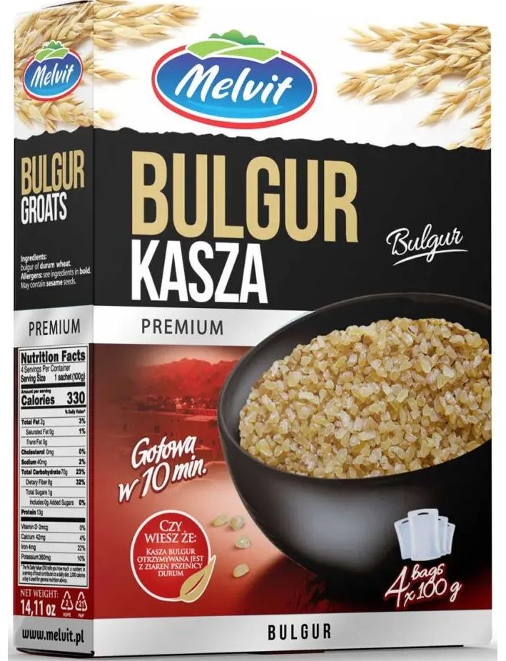 У Туреччині булгур є ключовим інгредієнтом салату Табуле , а також інших східних страв. Melvit рекомендує його до закусок, десертів, фаршированих овочів і основних страв на вечерю - він чудово смакує як доповнення до риби чи м'яса.