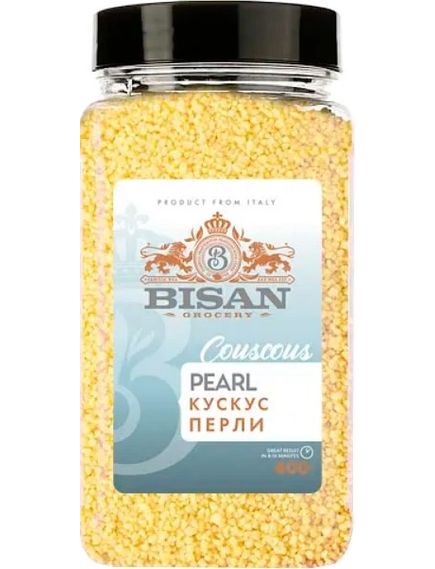 Bisan Pearl Couscous - італійський кускус з великими зернами, виготовлений з пшениці твердих сортів. Має м'яку структуру і природний смак, ідеально підходить для страв з м'ясом, овочами, рибою або соусами. Відмінний вибір для салатів та гарнірів у середземноморському стилі.