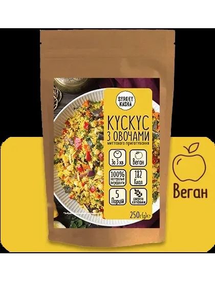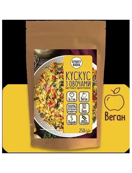 Кускус з овочами Street Kasha 250 г в дой-пак упаковці з zip-lock - це натуральна каша миттєвого приготування в упаковці з zip-замком для зручного зберігання!