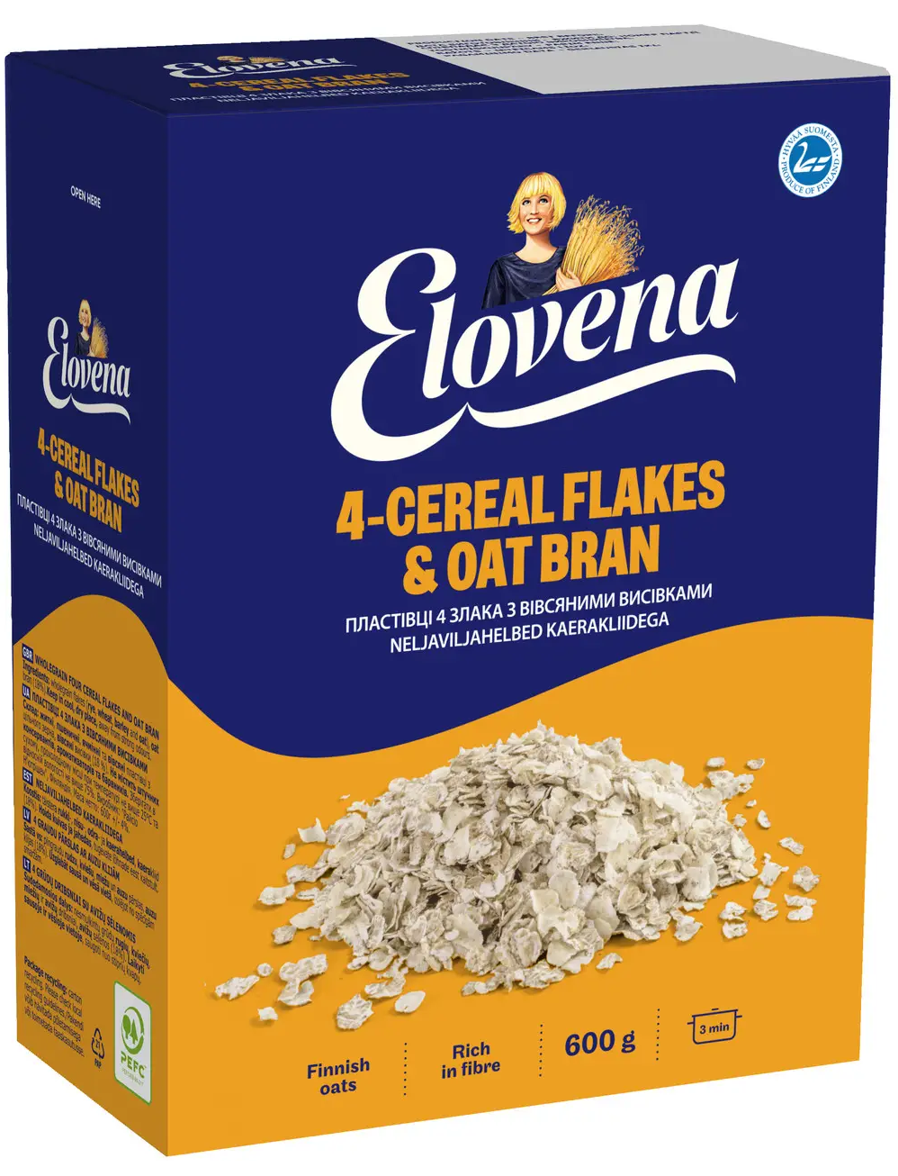 Пластівці 4 види зернових з вівсяними висівками — смачний і корисний продукт, справжній сніданок краси, містить кальцій і фосфор, вітаміни групи В, мікроелементи та амінокислоти. Високий вміст клітковини покращує моторику кишечника і травлення.