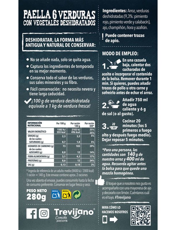 Насолоджуйтесь справжньою овочевою паельєю, корисною, смачною та без добавок. Тільки рис, овочі та приправи для швидкої та легкої паельї. Якщо хочете, додайте трохи фантазії, щоб зробити вашу паелью більш індивідуальною.