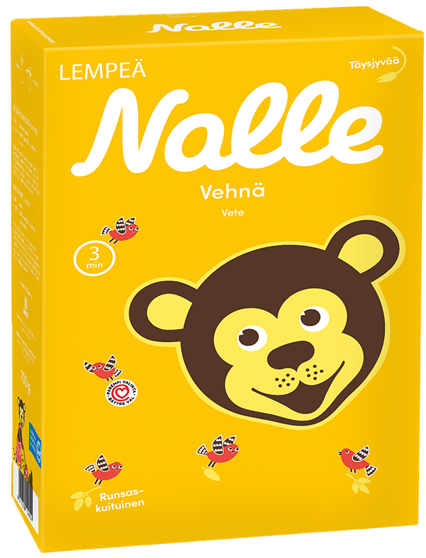 З пшеничних цільнозернових пластівців Nalle можна приготувати ніжно смачну кашу всього за 3 хвилини. Цільнозернові каші містять хороші вуглеводи та велику кількість клітковини, яка сприяє роботі кишечника. Вміст клітковини 13%.