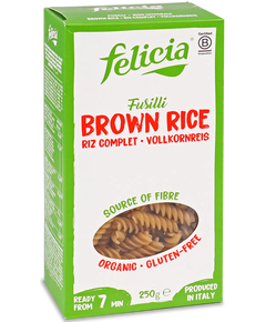 Склад: 100% коричневий рис з італійського ланцюга поставок. Паста Felicia з коричневого рису є джерелом клітковини та містить лише один інгредієнт : 100% органічне італійське борошно з коричневого рису, натурально безглютенове . Він має насичений, сільський смак, характерний для коричневого...