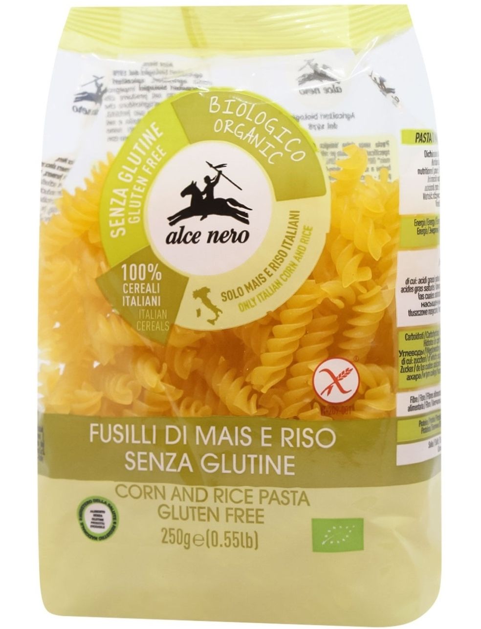 Органічні безглютенові пенне Alce Nero виробляються тільки з органічної кукурудзи та рису, вирощених в Італії.