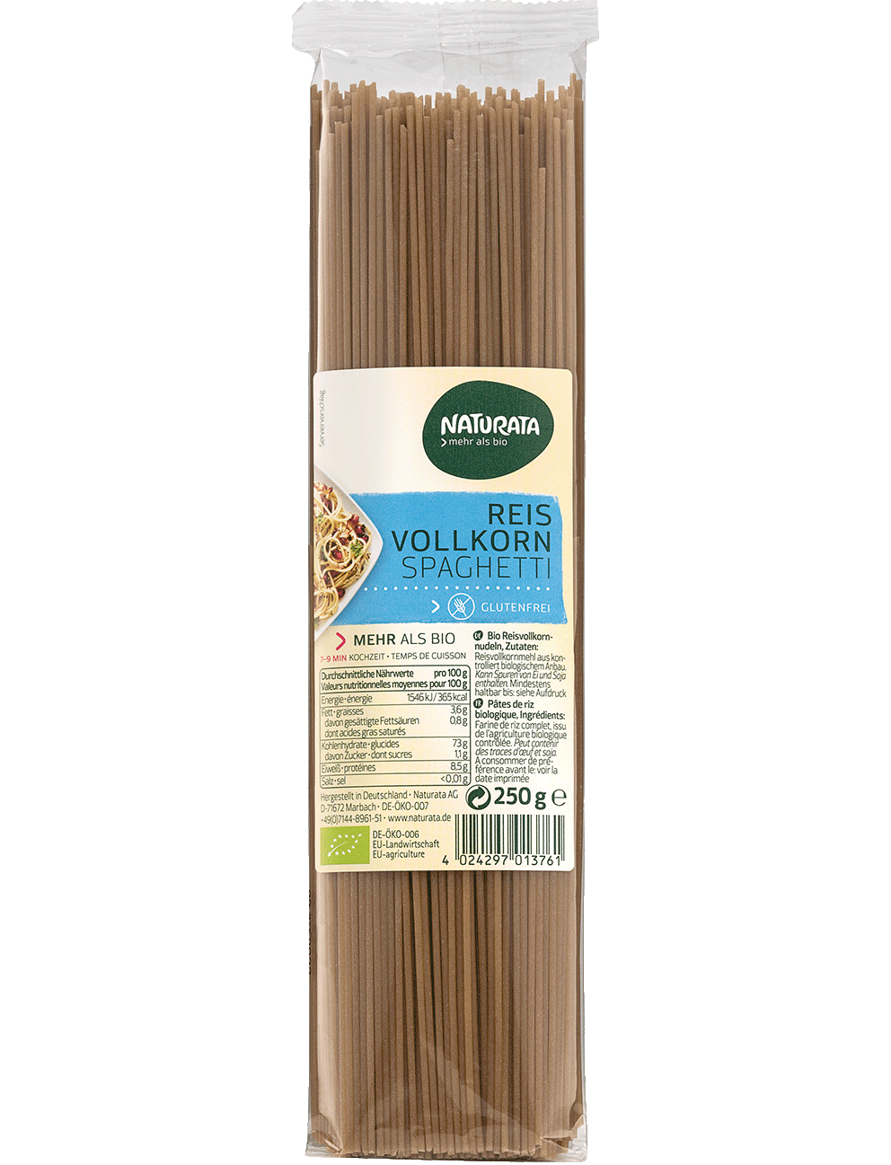 Регулярні аналізи незалежних лабораторій гарантують, що рисова локшина Naturata не містить глютену. У виробництві рисової пасти Naturata повністю уникають використання допоміжних речовин або добавок. Рис, який використовується для цього, виробляється відповідно до суворих інструкцій контрольованого органічного вирощування.