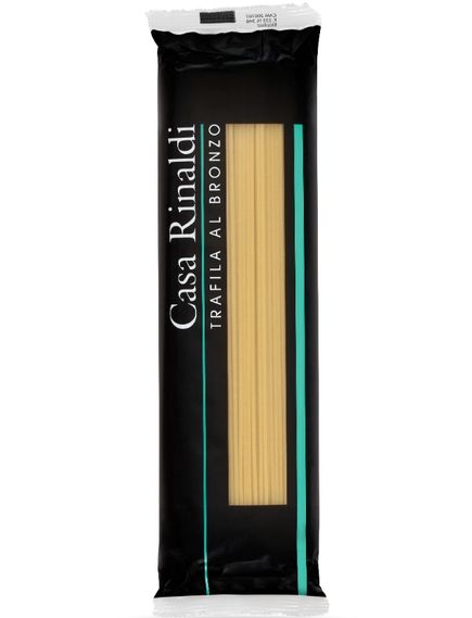 Паста Casa Rinaldi представляє найвищі італійські традиції та досвід. Кожен формат виробляється за допомогою стародавнього методу бронзової витяжки: це процес, під час якого тісто, виготовлене з манного борошна та води, пропускається шляхом екструзії через бронзові витяжки, які надають макаронним виробам шорсткості та тілесності. Далі серія лез відрізає виріб до потрібної довжини. Нарешті слід фаза сушіння, яка виконується повільно та при низьких температурах.