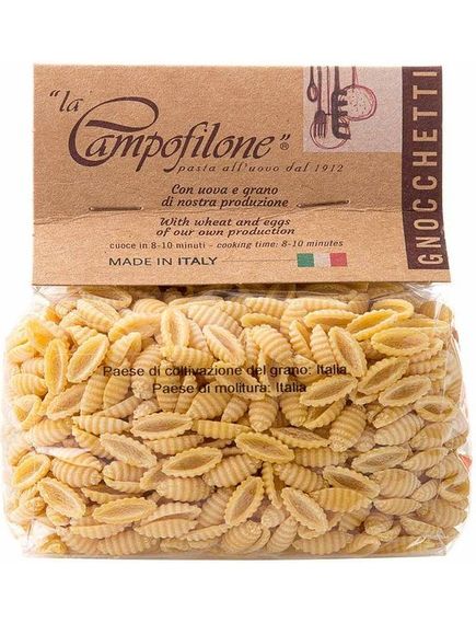 Ньокеті La Campofilone — це традиційна італійська паста у формі маленьких раковин. Така форма дозволяє продукту добре утримувати соус та інші компоненти готової страви. Компанія La Campofilone виготовляє пасту більше ніж 100 років, дотримуючись рецептів, що передається від покоління до покоління. Бренд піклується про природу, тому підтримує екологічне виробництво, а для своєї продукції вибирає лише натуральні складники. Ньокеті найкраще подавати з густими соусами з мʼяса та овочів. Також ця паста вдало поєднується з бобовими: нутом, квасолею або сочевицею.