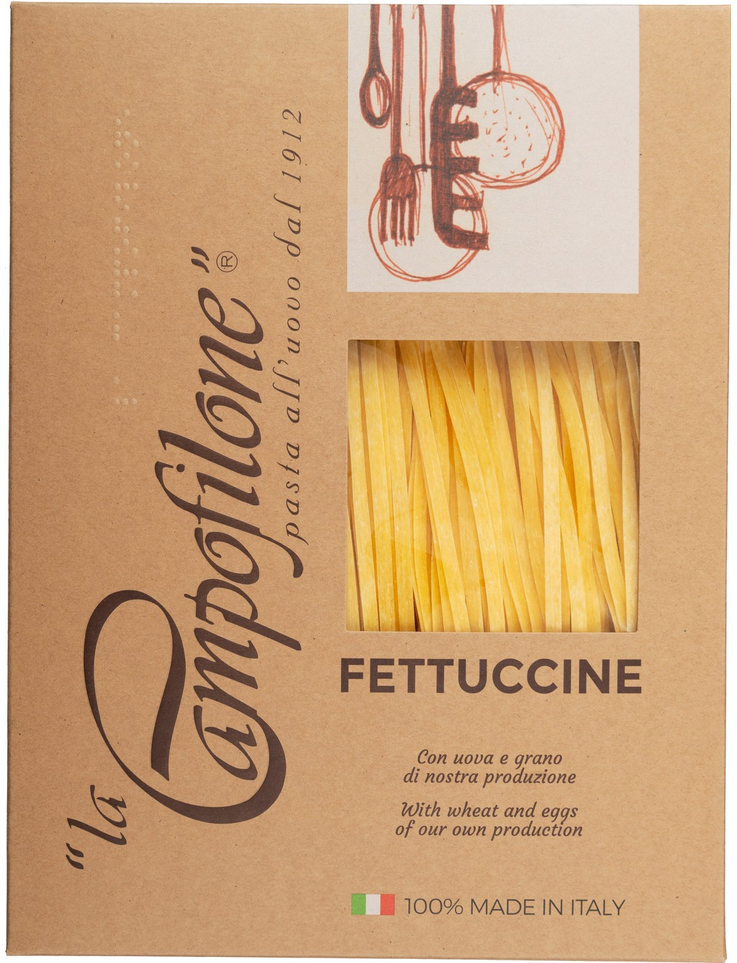 La Campofilone сто років виготовляють пасту на основі яєць та дрібочки любові до традиційної італійської справи. У La Campofilone кажуть, що секрет смаку їхньої пасти у традиціях: в інгредієнтах, які використовували століття тому, а також у способі приготування — тонкі листи пасти висушуються повільно та поступово. Тут поважають природу, тому і інгредієнти, і саме виробництво є екологічно-чистими.