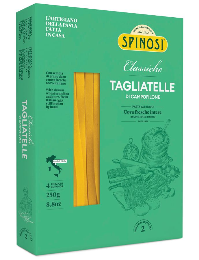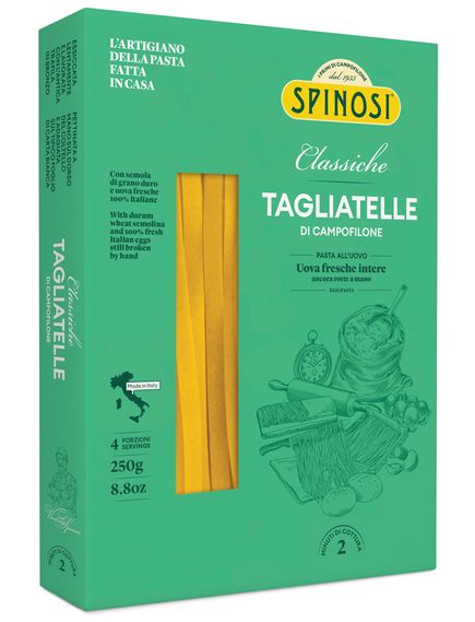 Тальятелле дуже люблять італійці по всій Італії. Вони дуже популярні в Емілії, де їх зазвичай готують з м'ясним соусом. Їхня назва походить від дієслова «тальяре», що означає «різати». Тальятелле мають ширину близько 5 мм. Їх виготовляють з манної крупи з твердих сортів пшениці та 100% свіжих італійських яєць.