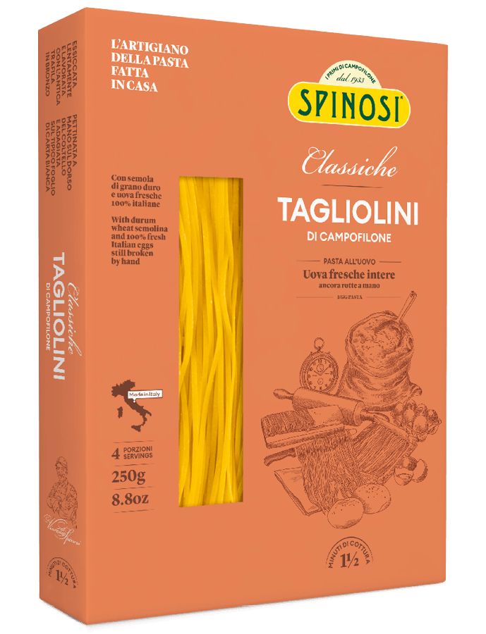 З усіх видів пасти з яйцями тальоліні є найвужчими, їх ширина становить близько 2-3 мм. Вони плоскі та такої ж довжини, як спагеті. Їх виготовляють з манної крупи твердих сортів пшениці та 100% свіжих італійських яєць.