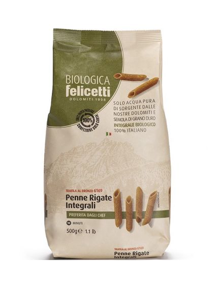 Felicetti Biologica - лінія, що підкреслює всі автентичні якості природного оточення. Паста, яка символізує натуральність найкращої органічної цільної пшениці, прозору воду джерела та свіжість нашого гірського повітря.