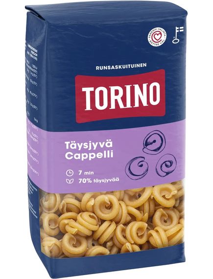 Багатий клітковиною цільнозерновий продукт Torino Cappelli має форму круглого ґудзика. Цільнозерновий Cappelli чудовий у формі, адже він добре зв'язує соус і робить смак страви ще вишуканішим. Ми рекомендуємо Cappell особливо як добавку до салатів і супів. У виробництві Cappelli використовується здорове цільнозернове борошно. Цільне зерно містить усі багаті поживними речовинами частини зерна і надає макаронним виробам насичений зернистий смак.
