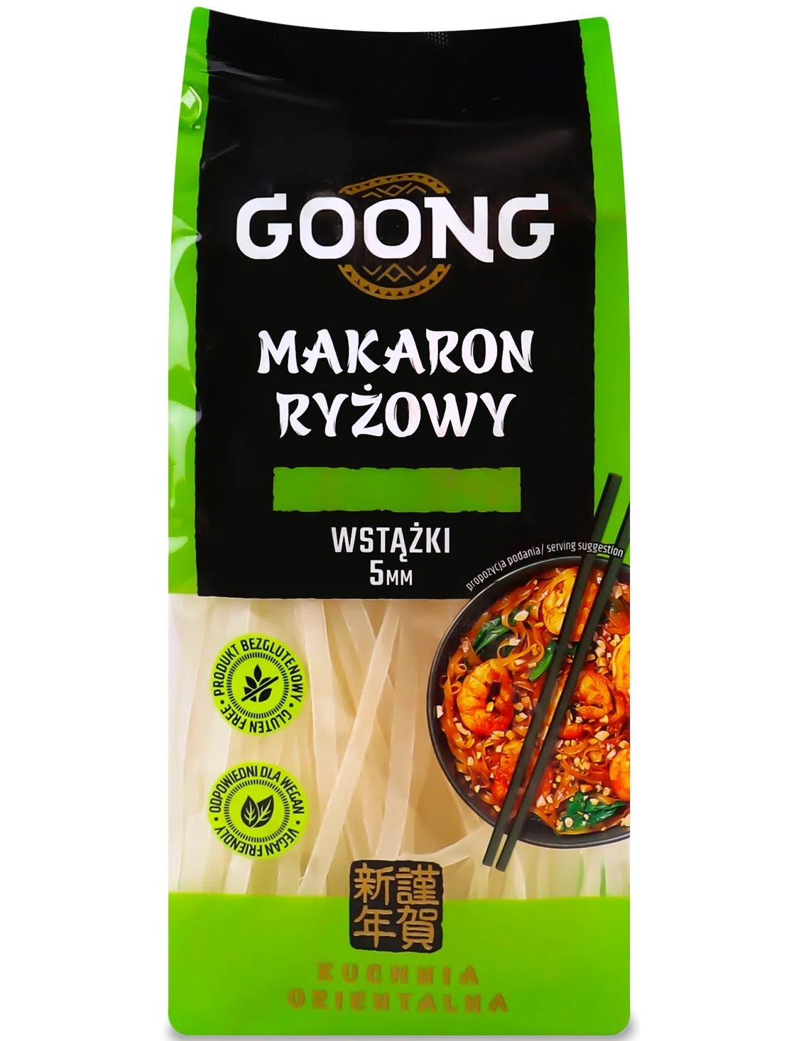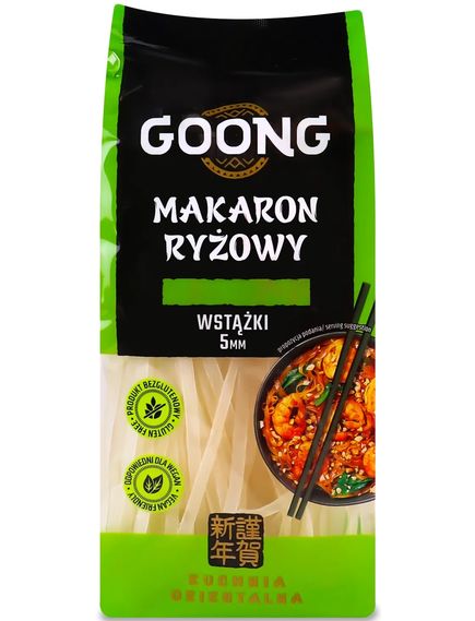 Безглютенова рисова локшина Goong стане чудовим доповненням до будь-якої азіатської страви. Стрічкова локшина є основою багатьох класичних тайських страв, у тому числі знаменитого Пад Тай. Рисова локшина чудово поєднується з соусами, м'ясом, овочами і морепродуктами. Вони дуже легкі та низькокалорійні, що робить їх ідеальними для здорової низькокалорійної дієти. Вони безпечні для людей з целіакією.