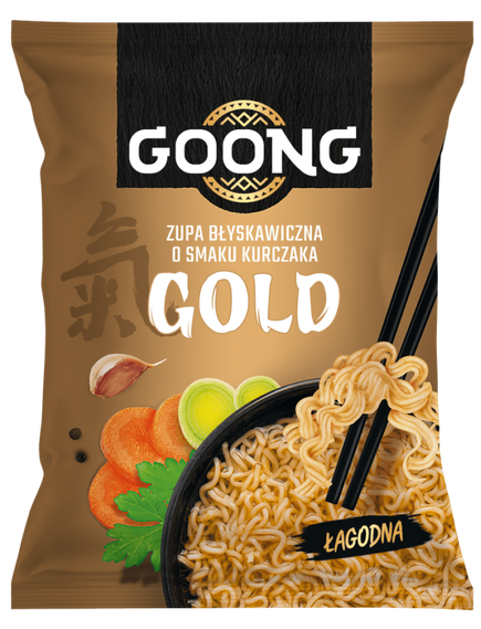 М’який курячий суп швидкого приготування Goong GOLD — це спокусливий вибір не тільки для любителів східної кухні. Якщо у вас немає часу готувати, але все одно хочеться гарячого, цей суп вас не розчарує. Досить додати окропу і готово! Їжте вдома, в офісі або під час подорожі. Ідеально змішані спеції та ситна локшина швидко зроблять його улюбленою закускою.