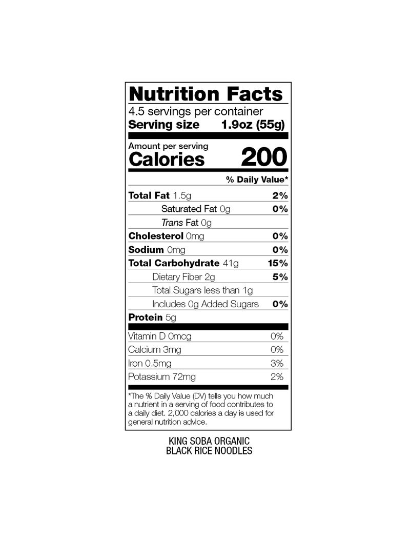 Локшина, як правило, вважається одним із найпоживніших «швидких страв» на землі. Наша локшина з чорного рису органічна, не містить пшениці та глютену. Чорний рис — стародавнє зерно, яке раніше використовувалося лише китайською елітою, історично його культивували лише в невеликих кількостях для китайських імператорів. Чорний рис особливо поживний, містить у кілька разів більше білка та мінеральних речовин, ніж звичайний білий рис, і багатий залізом, кальцієм, цинком, марганцем, селеном і вітамінами групи В. Органічна локшина з чорного рису King Soba кошерна, ідеальна для вегетаріанців, веганів, целіакії або чутливих до пшениці та глютену. Локшина є швидкою та здоровою альтернативою їжі. Наша чорна рисова локшина під час варіння набуває темно-фіолетового кольору, що надає чудового горіхового смаку. Локшина є надзвичайно універсальним основним продуктом харчування, спробуйте використовувати її замість макаронів як здорову альтернативу без глютену.