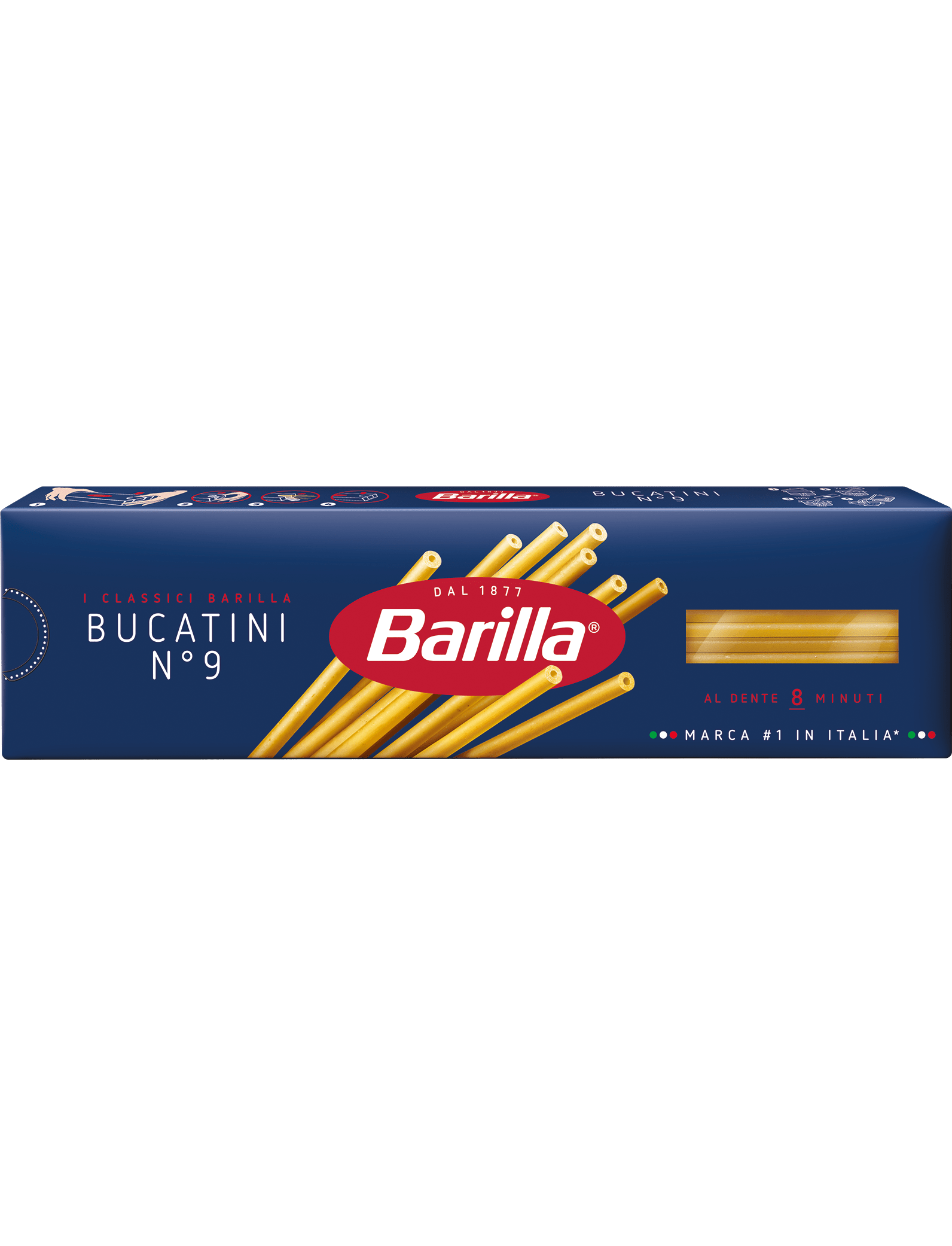 Паста Barilla Букатіні - це товсті спагетті з отвором, що проходить центром виробу. Ця традиційна для Центральної Італії форма пасти веде своє походження з Риму. Букатіні є ідеальним варіантом довгої пасти, до якого чудово підійде будь-який соус.