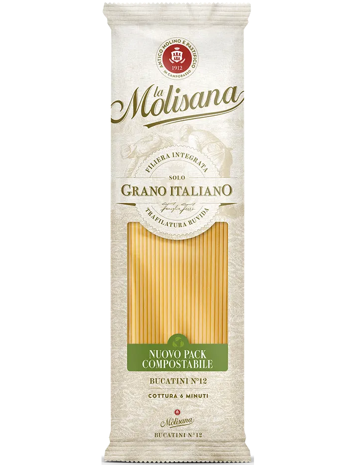 Ця форма, яка також називається біголі або пікі, має центральний отвір, у якому збираються приправи. Ми пропонуємо їх зі смачним соусом, приправленим свинячою щокою та посипанням пекоріно романо.