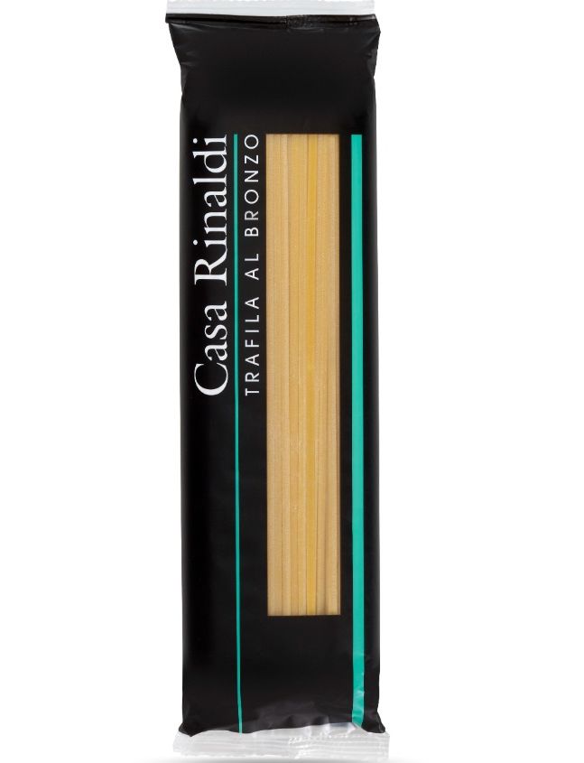 Паста Casa Rinaldi представляє найвищі італійські традиції та досвід. Кожен формат виробляється за допомогою стародавнього методу бронзової витяжки: це процес, під час якого тісто, виготовлене з манного борошна та води, пропускається шляхом екструзії через бронзові витяжки, які надають макаронним виробам шорсткості та тілесності. Далі серія лез відрізає виріб до потрібної довжини. Нарешті слід фаза сушіння, яка виконується повільно та при низьких температурах.