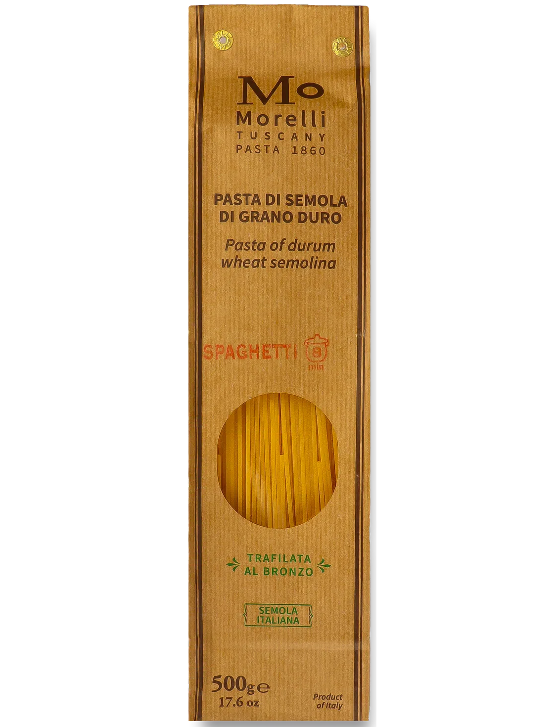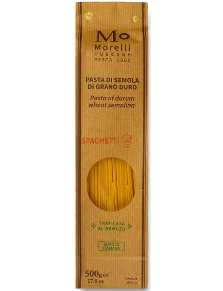 Виготовляється з італійського борошна твердих сортів пшениці. Метод нанесення бронзи надає макаронам відмінну консистенцію і шорсткість.