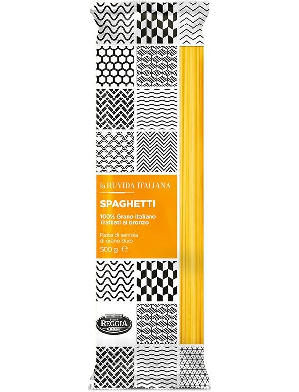 Нова і приваблива упаковка, натхненна сучасним мистецтвом. Цілеспрямована філософія для тих, хто хоче добра і любить прекрасне. Це вершина нашої лінійки, з особливим смаком. Створена, щоб захопити вишукані переваги, збагатити і оживити асортимент макаронних виробів. Шорсткість підкреслюється малюнком з необробленої бронзи, який дозволяє пасті краще утримувати соус.