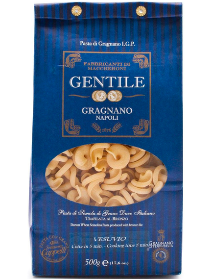 Gentile Паста Везувіо – це унікальна італійська паста, названа на честь вулкана Везувій завдяки своїй закрученій, спіралеподібній формі. Вона ідеально підходить для утримання соусів, особливо густих та кремових. Виробляється у Граньяно, Італія, і має статус IGP (Indicazione Geografica Protetta), що гарантує її походження та високу якість.