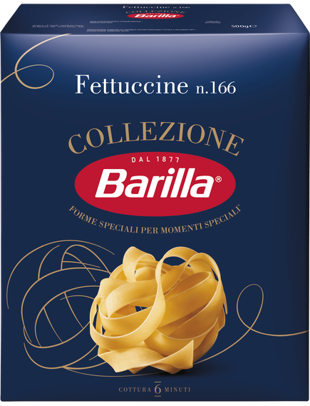 Таку назву паста отримала через зовнішню схожість із стрічками (італ. fettuccia — «стрічка»). Феттуччині – це тонкі плоскі смужки тіста шириною близько 7 мм. Феттуччині Barilla нарізаються з тонко розкатаного тіста, зробленого з усією любов'ю до пасти за традиційним рецептом регіону Емілія-Романья. Їх шорстка і трохи пориста текстура ідеально утримує соус на поверхні і дозволяє йому максимально розкрити всі відтінки смаку.