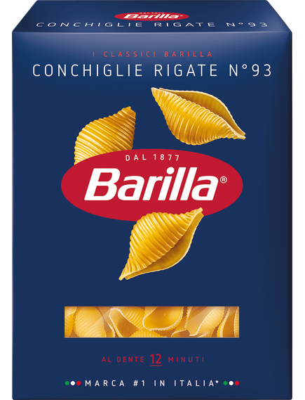 Паста Barilla Конкільє Рігате № 93 має рельєфну поверхню та поглиблення всередині, завдяки чому вона чудово утримує будь-який соус.