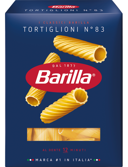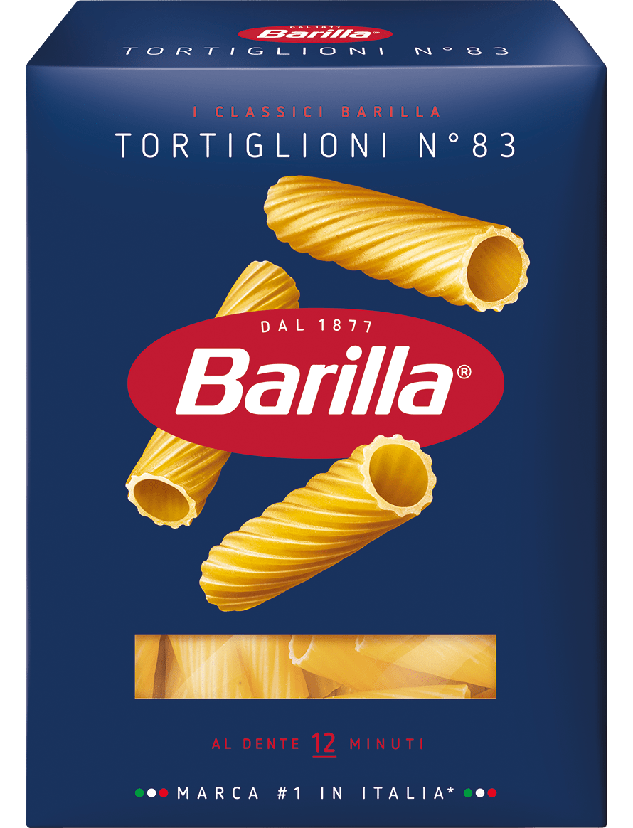 Тортильйони Barilla - це короткі порожні трубочки з рифленням. Вони відмінно поєднуються з густими м'ясними, грибними або вершковими соусами, які обволікають пасту, а не стікають із неї.