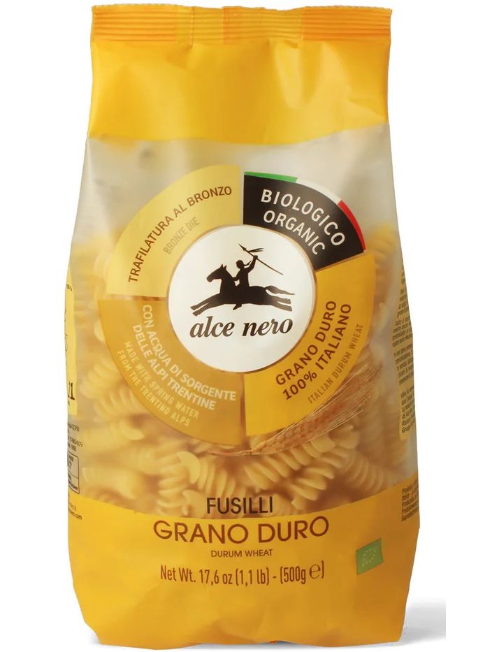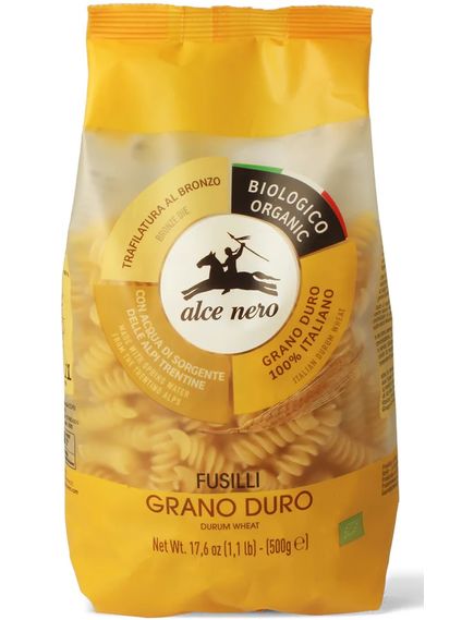 Фузіллі Alce Nero - органічна паста, виготовлена на основі борошна з італійської пшениці твердих сортів та джерельної води з Трентінських Альп. Створена у бронзовій матриці.