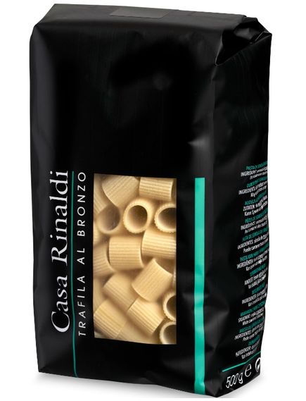 Паста Casa Rinaldi представляє найвищі італійські традиції та досвід. Кожен формат виробляється за допомогою стародавнього методу бронзової витяжки: це процес, під час якого тісто, виготовлене з манного борошна та води, пропускається шляхом екструзії через бронзові витяжки, які надають макаронним виробам шорсткості та тілесності. Далі серія лез відрізає виріб до потрібної довжини. Нарешті слід фаза сушіння, яка виконується повільно та при низьких температурах.