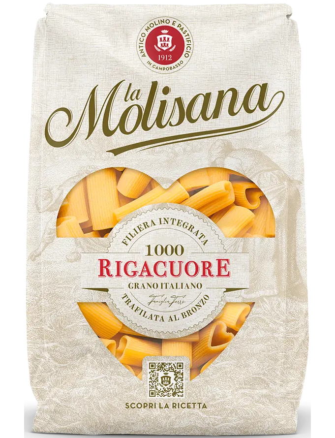 Rigacuore – це інноваційний формат пасти La Molisana, який завдяки формі серця , виготовленій зі 100% італійської пшениці та бронзовому малюнку, передає сентиментальність, романтизм, легкість та позитив.