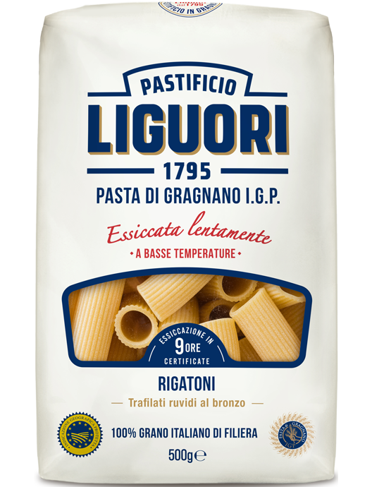 Назва формату, безумовно, викликає асоціації. Фактично, це нагадує наявність численних ліній, здатних утримувати соуси. Рігатоне, безумовно, один з найпопулярніших форматів, ідеальний для недільних обідів. Liguori також пропонує ригатоні в неаполітанській версії, доступні в лінії Le Speciali.