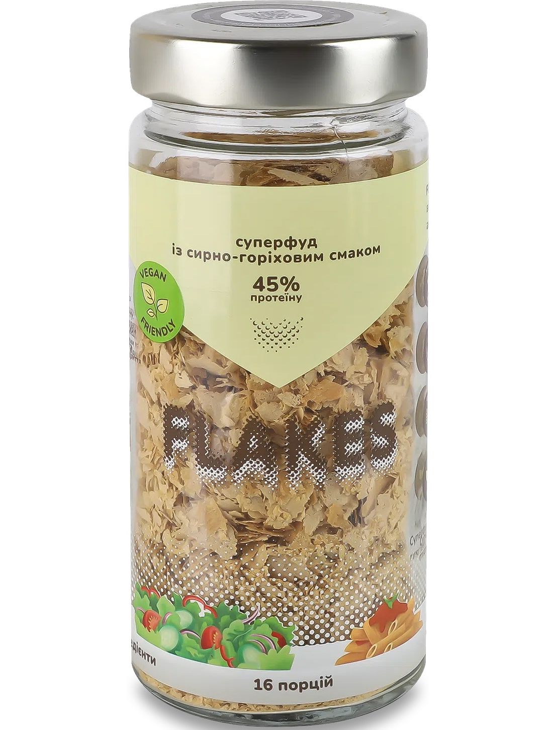 Завдяки поєднанню пікантного сирно-горіхового смаку та корисного поживного вмісту FLAKES – це ідеальне рішення на шляху до здорового, а головне – смачного харчування!