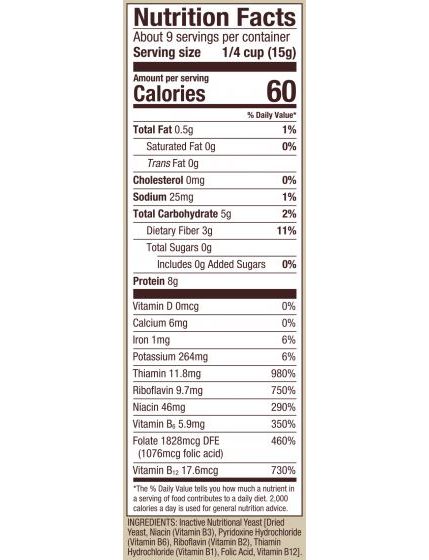 Харчові дріжджі є універсальною добавкою до вегетаріанської та веганської кухні з приємним сирним смаком. Він багатий вітаміном B-12 і забезпечує 8 грамів білка на порцію. Додавайте до соусів, скремблів, чіпсів з листової капусти, крекерів і печива або посипайте ними овочі, печену картоплю чи попкорн.