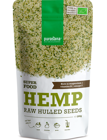 Purasana Hulled Hemp Seeds містить 100% чисте очищене насіння коноплі без ТГК і додаткових добавок. Продукт сертифікований як органічний, веганський і кошерний , а також не містить алергенів глютену, лактози та сої.