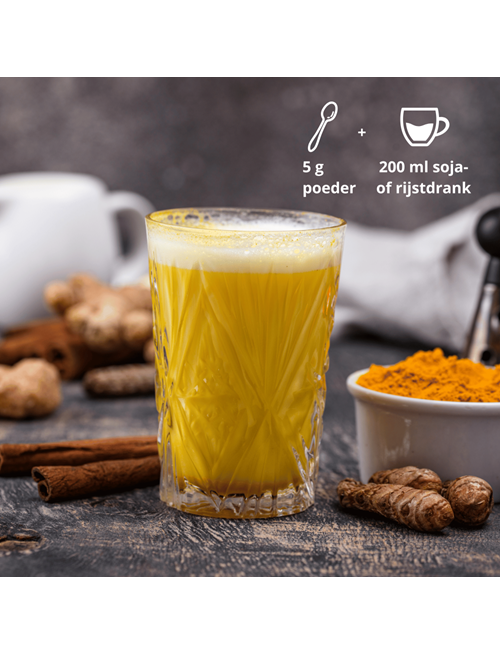 Подаруйте собі переваги нашого золотого латте з імбиром/куркумою! Без цукру та на 100% рослинний. Є багато переваг імбиру: підтримка травлення та резистентність – приклади цього. Куркума є чудовим антиоксидантом і підтримує імунну систему та травлення.