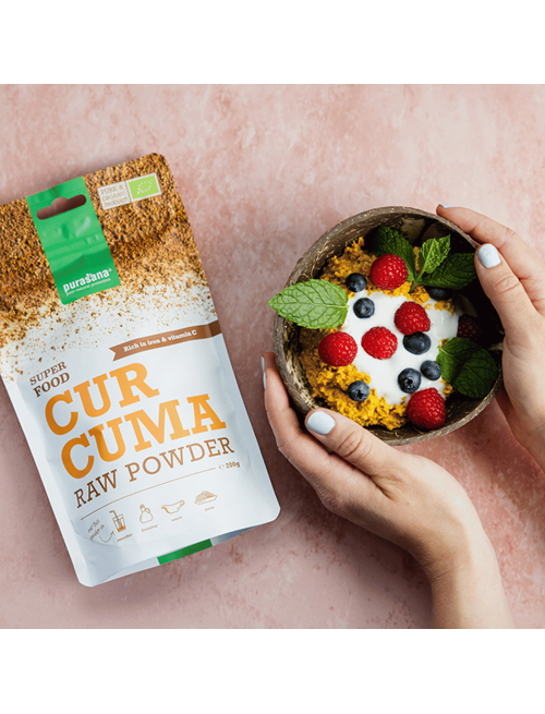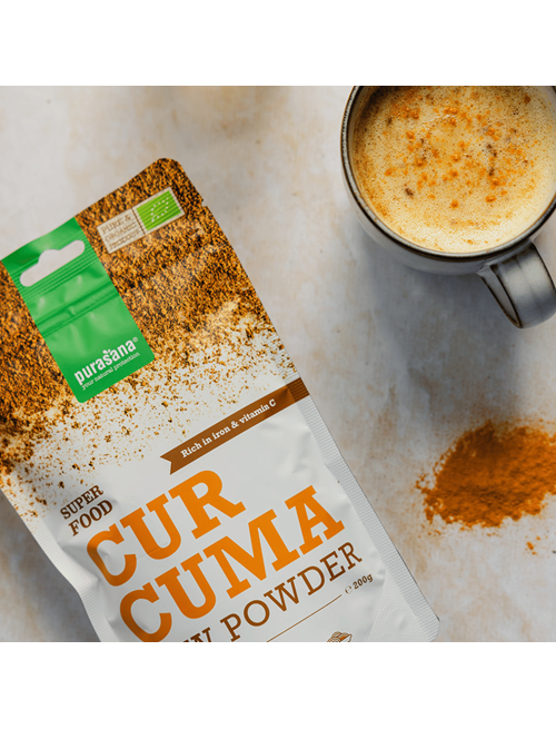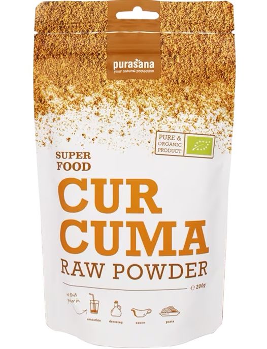 Сирий порошок Purasana Curcuma містить 100% сирої куркуми без будь-яких додаткових добавок. Продукт сертифікований як органічний, веганський і кошерний , а також не містить алергенів глютену, лактози та сої.