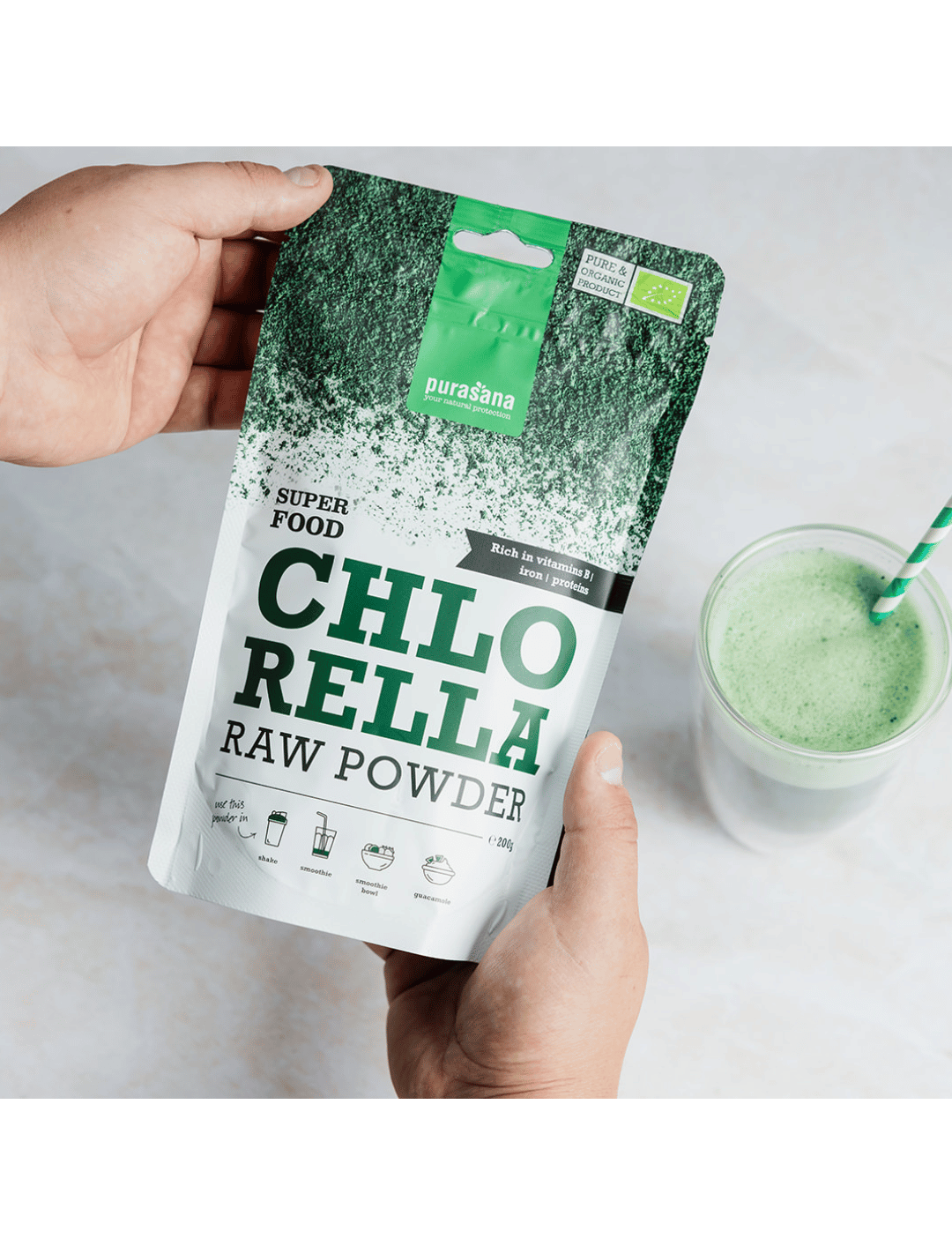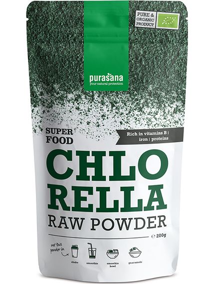 Purasana Chlorella Raw Powder містить 100% сирої хлорели без будь-яких додаткових добавок. Продукт сертифікований як органічний, веганський і кошерний , а також не містить алергенів глютену, лактози та сої.