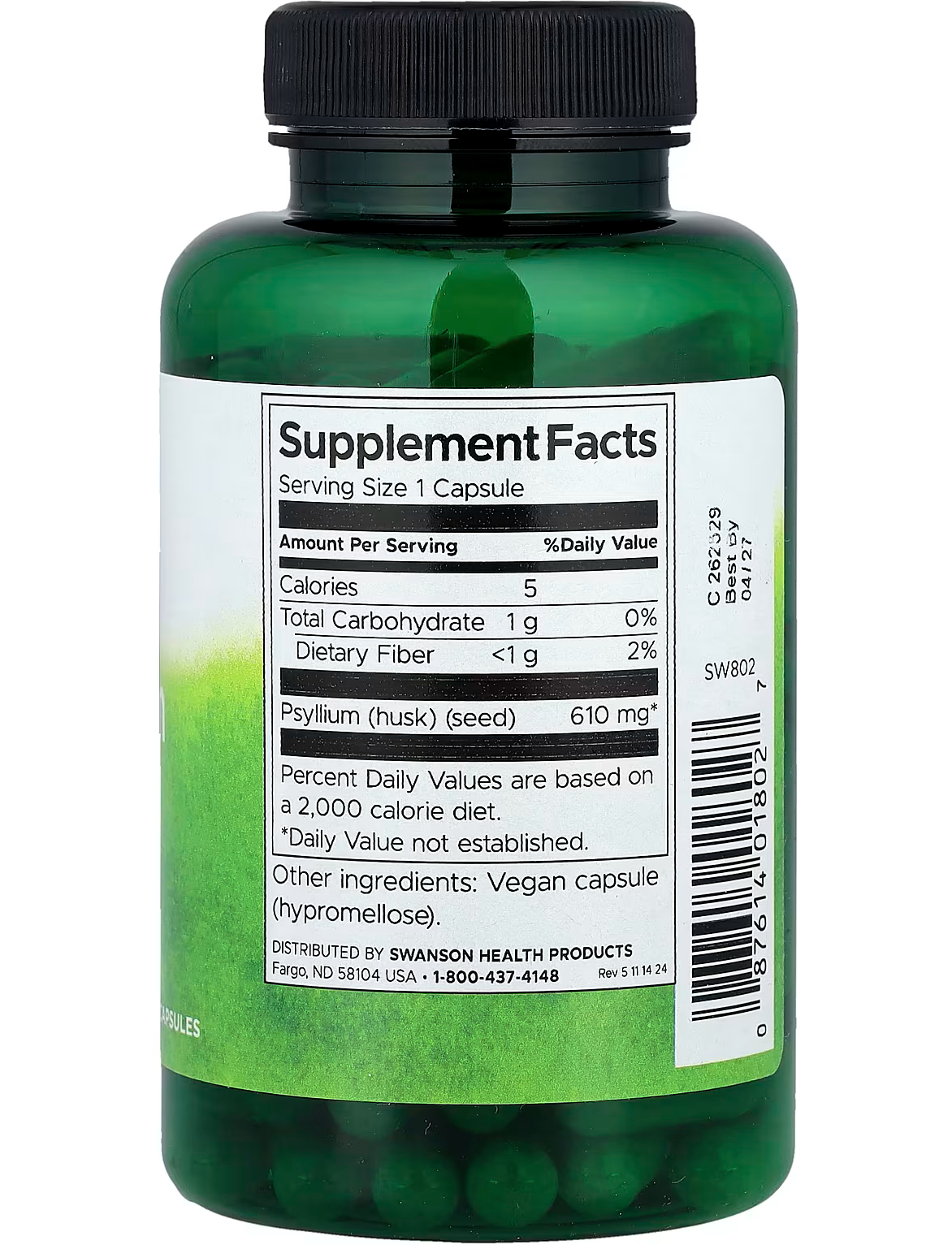 Лушпиння насіння подорожника Swanson сприяє нормальній роботі кишечника та підтримці серцево-судинної системи. Розчинна клітковина в лушпині насіння подорожника, що століттями використовується як засіб для очищення кишечника, робить його цінним поживним засобом для здоров’я серцево-судинної системи та підтримки вже нормалізованого рівня холестерину, якщо вживати його в раціоні з низьким вмістом насичених жирів.