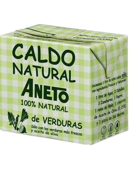 Повністю натуральні бульйони Aneto готуються з високоякісних овочів, морської солі та оливкової олії та варяться на повільному вогні більше трьох годин. На відміну від інших бульйонів на ринку, у нашому бульйоні не використовуються концентрати, ароматизатори чи порошки. Наш бульйон сертифікований без ГМО. Отриманий продукт є ситним бульйоном або основою для приготування супів, рагу, різотто та паельї.