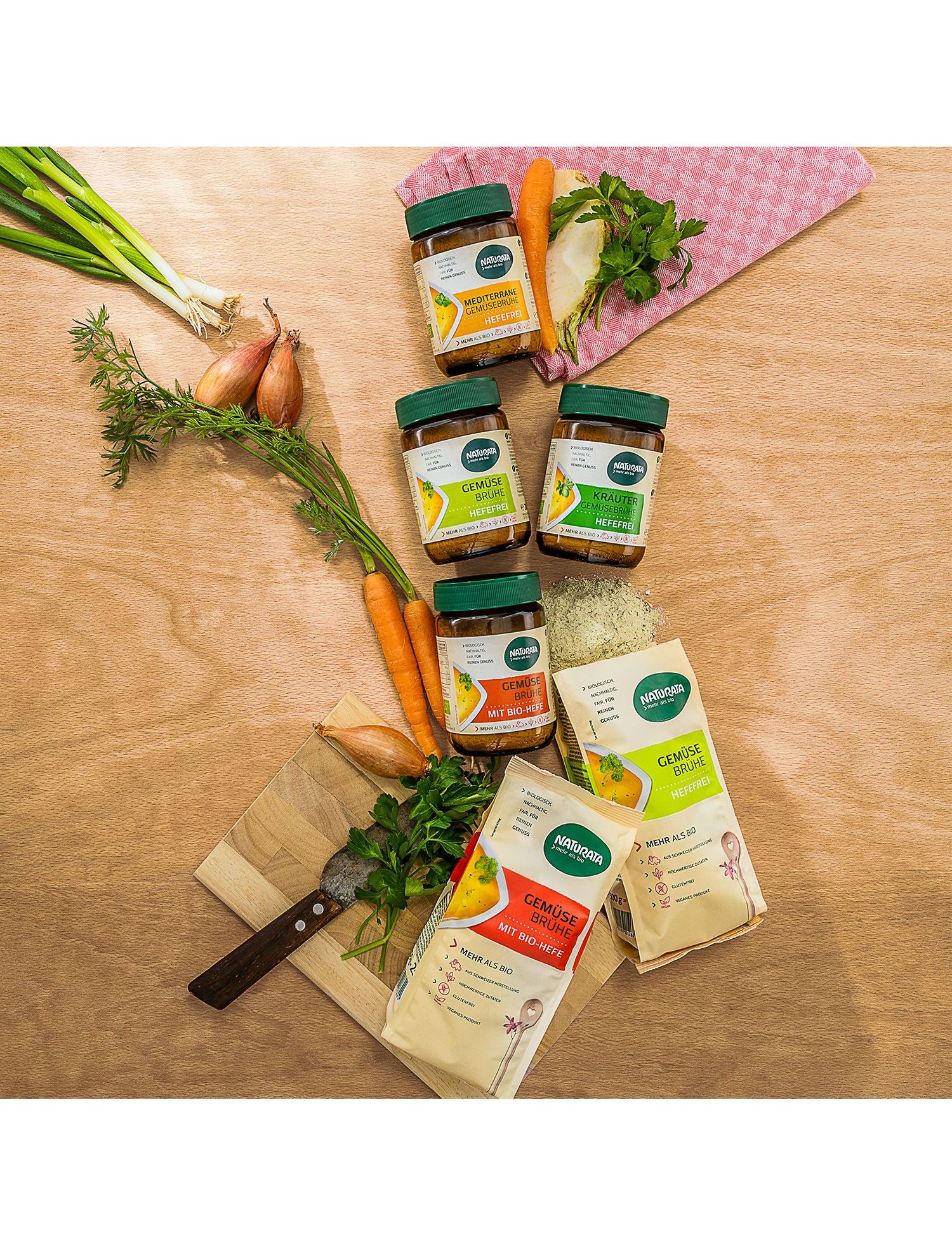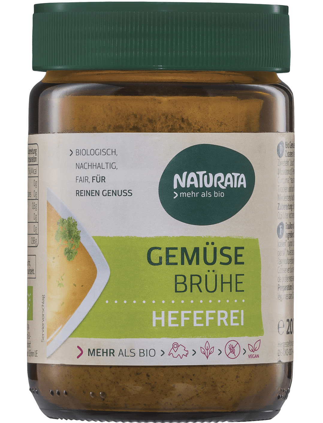 Завдяки своїм бездріжджовим овочевим бульйонам Naturata пропонує альтернативу для всіх, хто не любить дріжджі або хто не хоче додавати дріжджі в їжу з моральних міркувань. Такий відвар також ідеально підходить людям з алергією на дріжджі. Овочевий бульйон без дріжджів вражає ніжним смаком овочів і мускатного горіха.