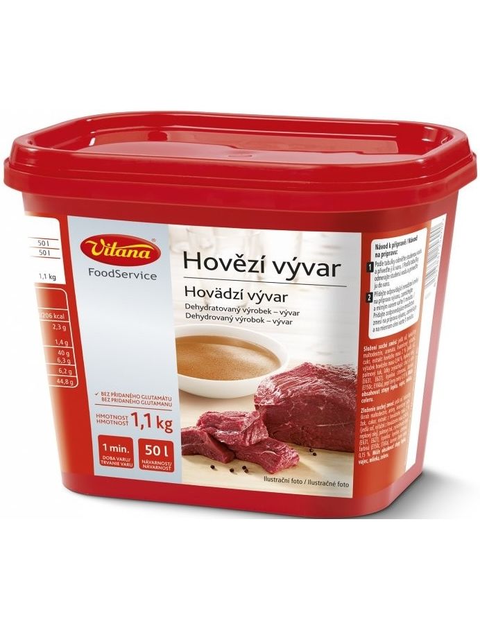 Яловичий бульйон Vitana — це міцний бульйон, який готується з нуля шляхом повільного варіння високоякісних інгредієнтів, як на вашій кухні. Чудово розчиняється, приємно пахне і надає вашим стравам потрібний смак.