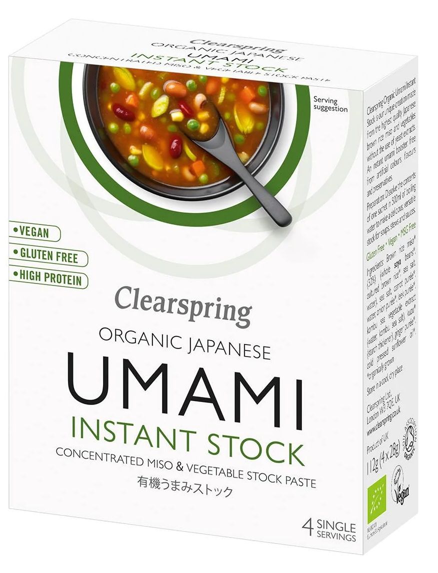 На відміну від більшості концентрованих овочевих бульйонів, Clearspring Umami Instant Stock виготовляється з натуральних інгредієнтів найвищої якості без використання дріжджових екстрактів. Це наше унікальне творіння, яке можна використовувати в неяпонських супах і рагу.