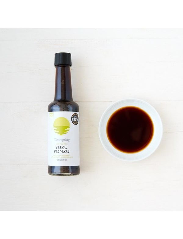 Ми раді оголосити про захопливе доповнення до нашого асортименту соусів та приправ: органічний юзу понзу. Це традиційна японська приправа, багата на умами, яка поєднує в собі пікантний смак цитрусового соку юзу з натуральним соєвим соусом. Це ідеальна приправа для обіднього столу, яку можна полити вашими улюбленими салатами, використовувати для створення пікантних заправок або як соус для пельменів гьодза та овочевої темпури.