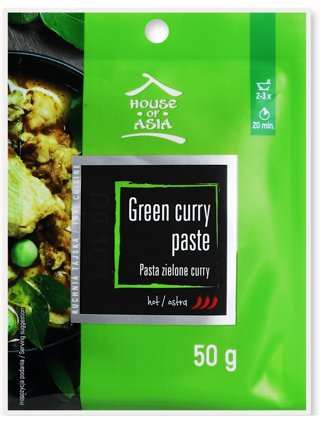 Найгарячіша паста карі, тепер у зручній упаковці. Зелена паста каррі - це суміш тайських спецій з чітким відтінком чилі та лемонграсу.