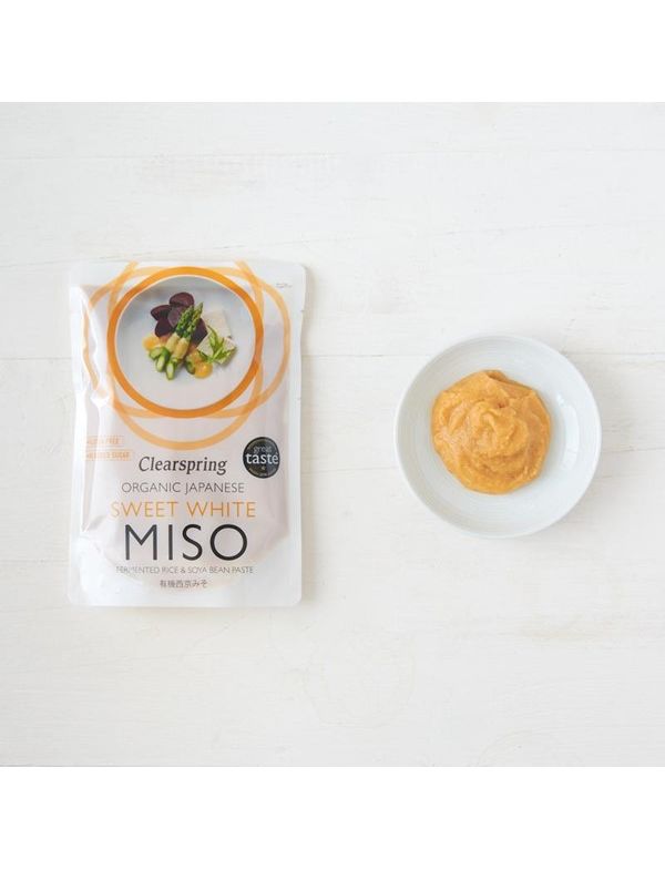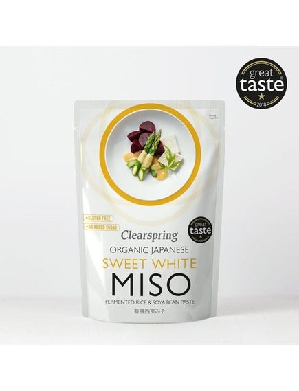Солодке біле місо Clearspring — це невитримане місо в кіотському стилі з чудовим кремовим смаком та злегка солоною солодкістю, яке традиційно виготовляється невеликими партіями для збереження своєї особливої якості. Його світлий колір може з часом темніти через природне старіння, але це не змінює його смак.